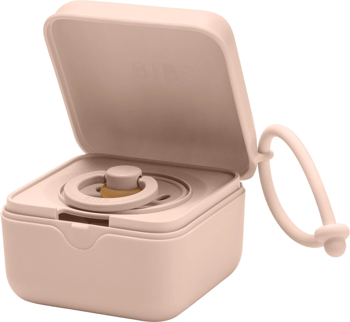 De Bibs Fopspeen opbergdoos wordt ook geleverd met een handige siliconen bandje in de zelfde kleur. Hiermee kan je de fopspeen doosje aan je luiertas of kinderwagen hangen.