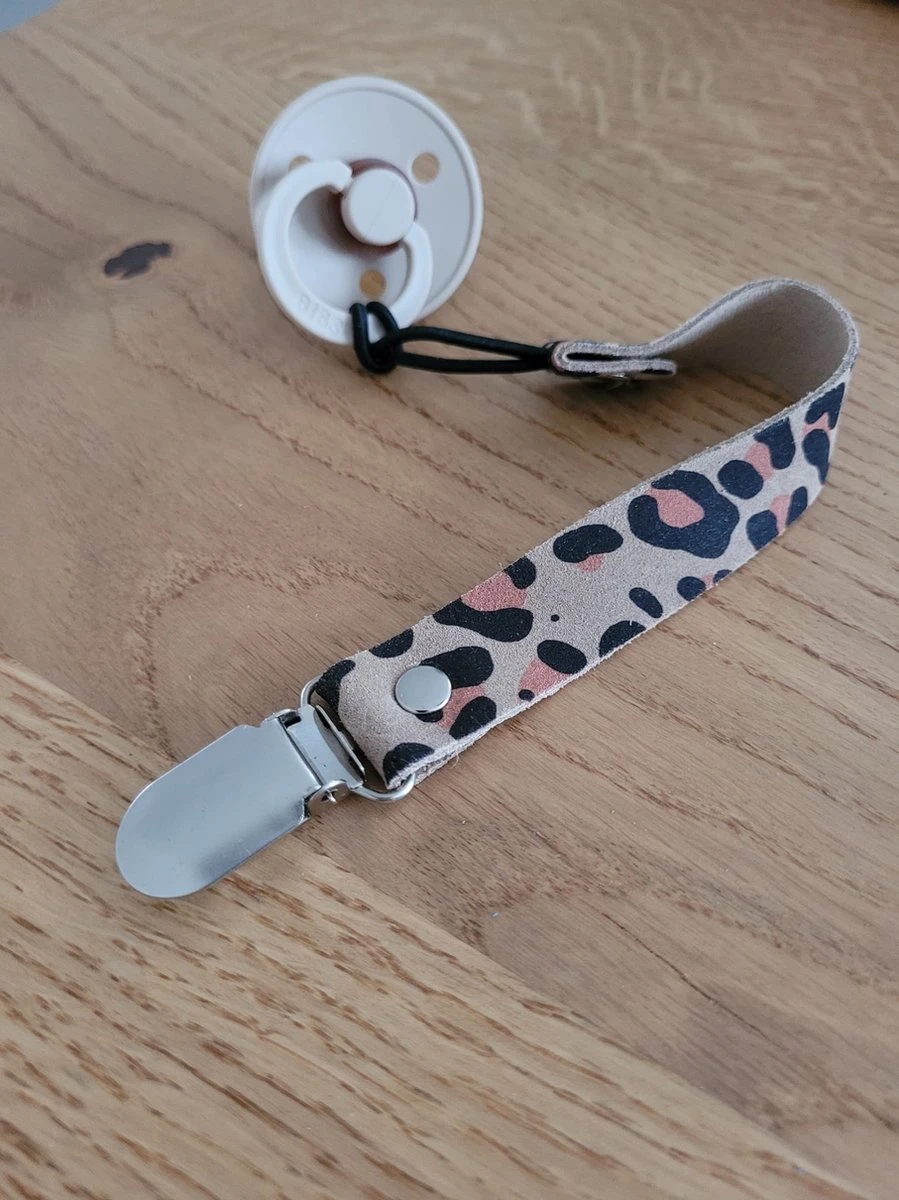 Ideaal als kraamcadeau! Zeg nou zelf hoe lief staat dit luipaard print speenkoord.