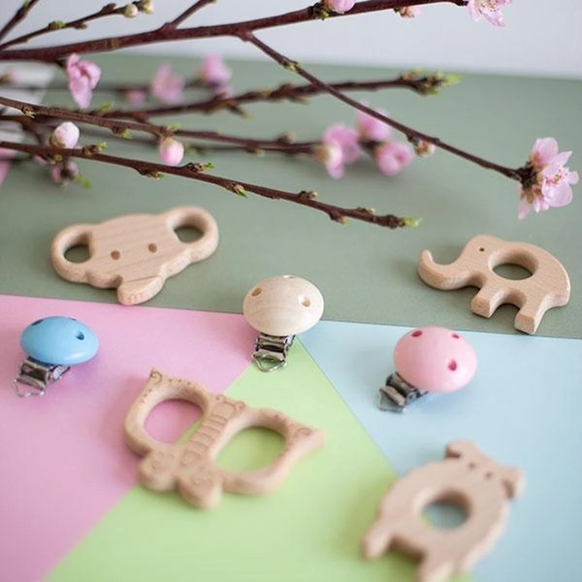 Houten Speenclip – De houten speenclips zijn verkrijgbaar in vrolijke baby kleuren. Haak of brei een speenkoord of speelgoed en bevestig de speenclip aan het handige lusje. De houten speenclips zijn getest en voldoen aan de Europese veiligheidseisen.
