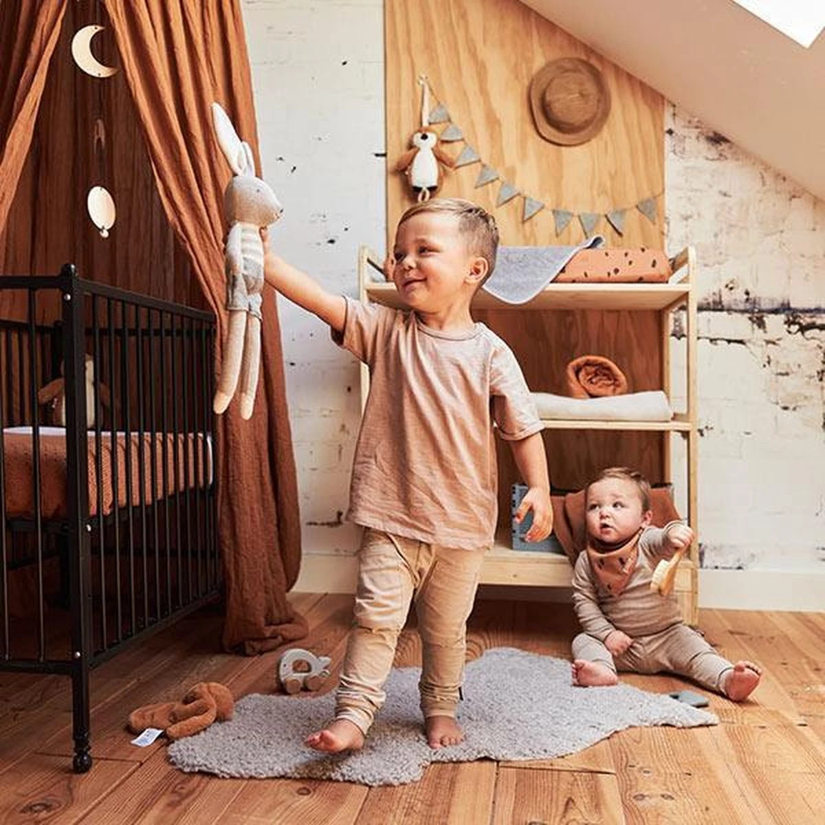 Deze stoere print vind je ondermeer ook terug op een stoelverkleiner en op monddoekjes, slaapzakken en een boxkleed. Waar laat je dit printje allemaal terugkomen?