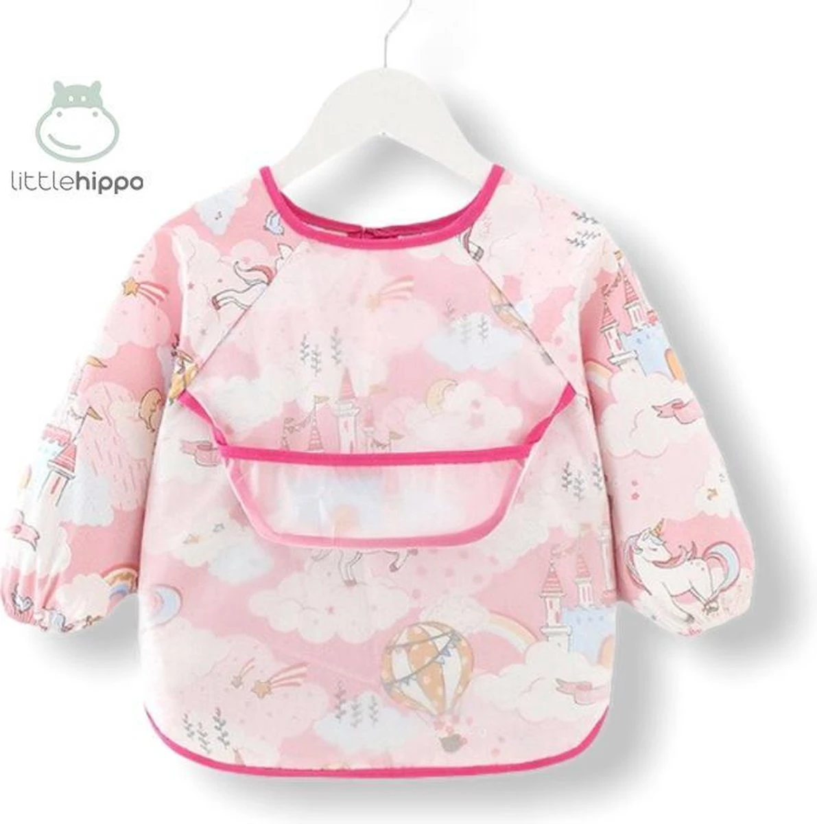 Deze leuke en handige slabbers van Littlehippo met lange mouwen beschermt de kleding van jouw kind tegen knoeien door eten of andere zaken.