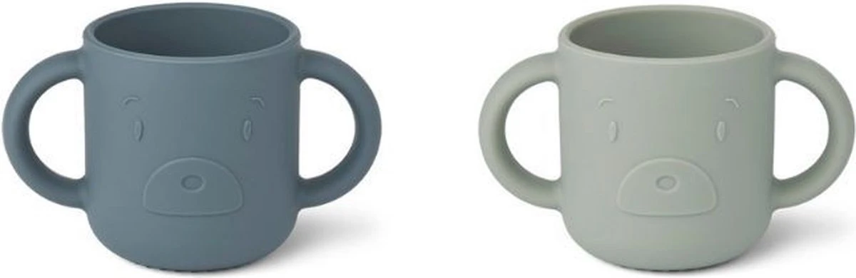 Gene bekers van Liewood zijn onbreekbare bekers met dubbel handvat. De bekers zijn vervaardigd van 100% BPA-vrije silicone en zijn voorzien van twee oren waardoor het makkelijker is om zelf te drinken. De set bevat twee gekleurde bekers die beiden gedecoreerd zijn met een gezichtje.