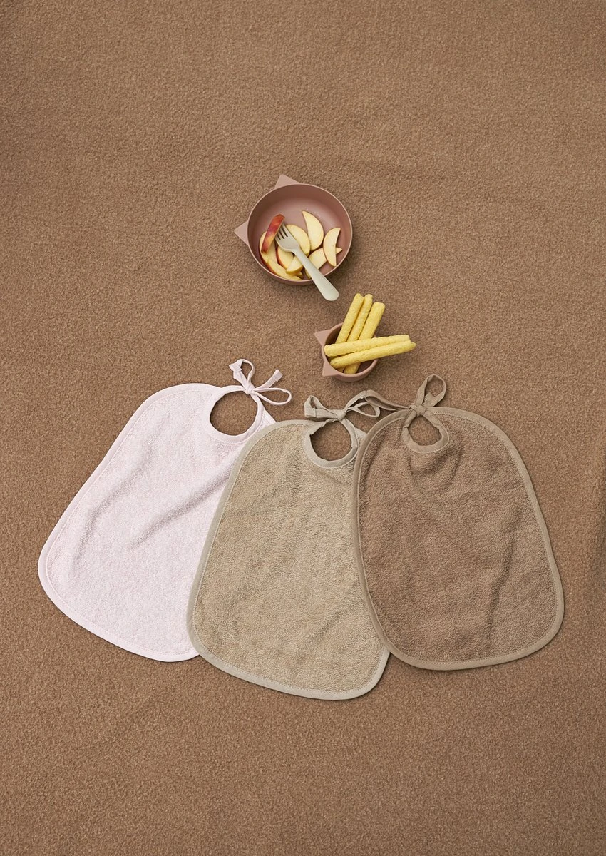 De slab is gemaakt van 100% katoen badstof, hierdoor neemt deze vocht goed op én is de slab sneldrogend. Je strikt de slab aan de achterzijde met de koordjes, zodat hij voor iedere leeftijd past.