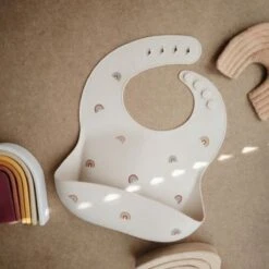 Deze Mushie silicone slab met een print van regenbogen is een echte must have, zeker als je kindje zelf gaat eten of uit een beker leert drinken. De slab is van silicone en heeft een diep opvangbakje die het meeste eten en drinken opvangt wat de mond niet bereikt, dus minder rommel op de grond. Daarnaast is het slabbetje waterafstotend, het laat geen vocht door dus de kleding blijft droog en schoon.