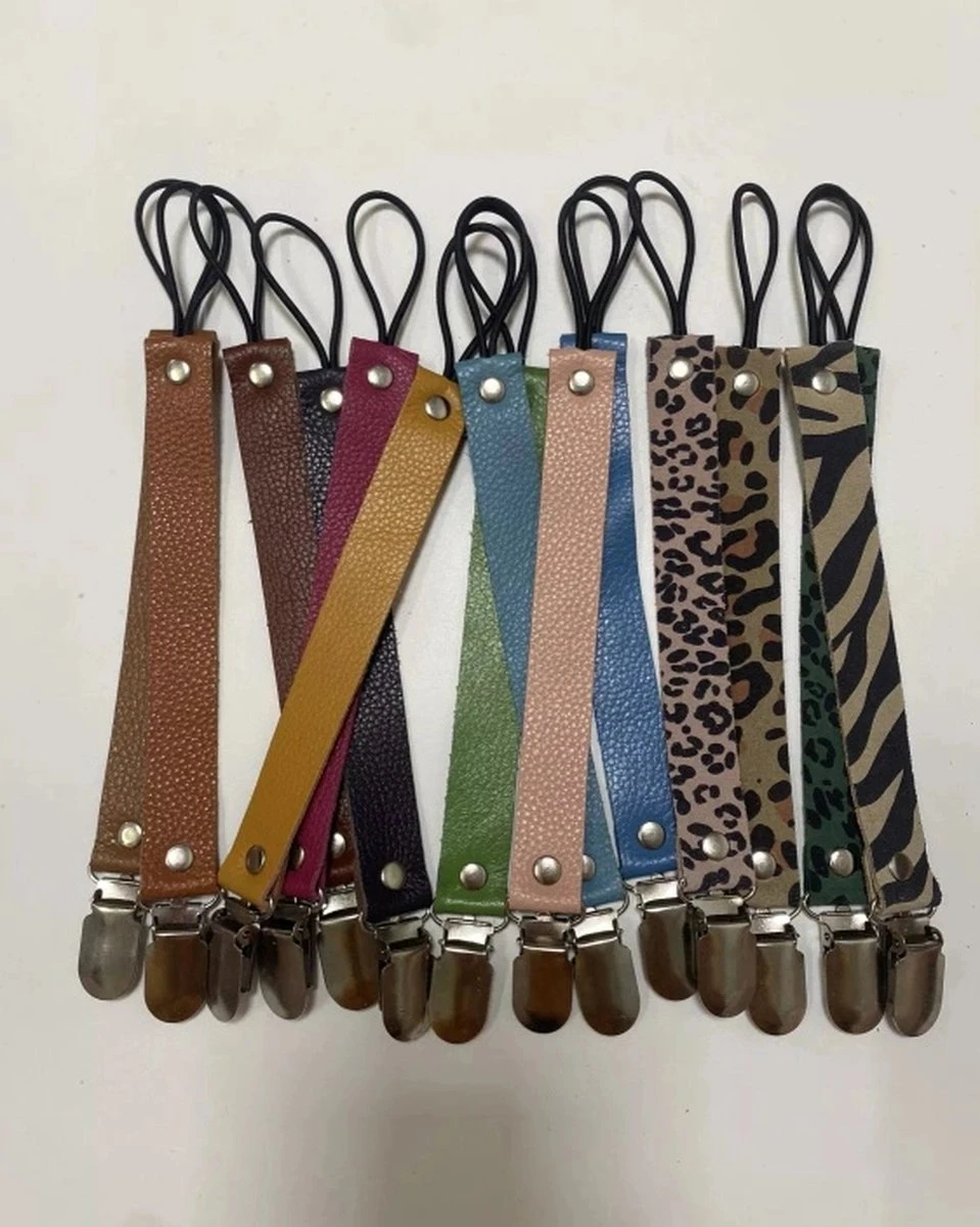 Hippe leren baby speenkoorden. Niet meer zoeken naar het speentje.