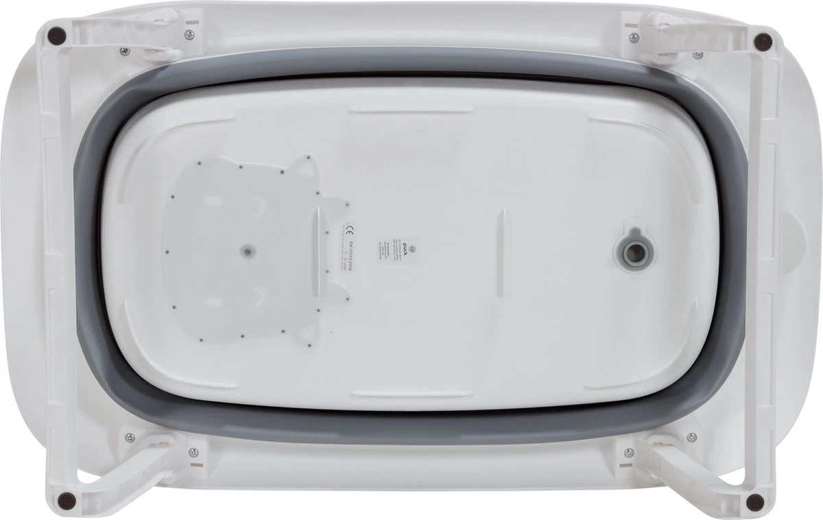 Dit handige opvouwbare kinderbadje in maat M, heeft een flexibele buigbare wand (grijs). Hierdoor kun je het plat opvouwen en compact opbergen. Superhandig voor thuis, op de camping of bij de oppas. De bovenrand, uitklap-poten en bodem zijn gemaakt van stevig kunststof (mat wit) waardoor het niet inzakt en alles veilig te gebruiken is, ook met je pasgeboren kindje.