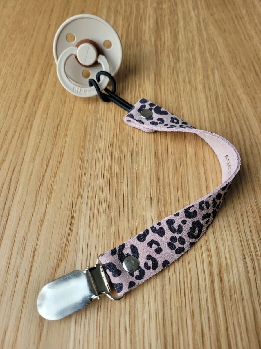 Ideaal als kraamcadeau! Zeg nou zelf hoe lief staat dit luipaard print speenkoord.