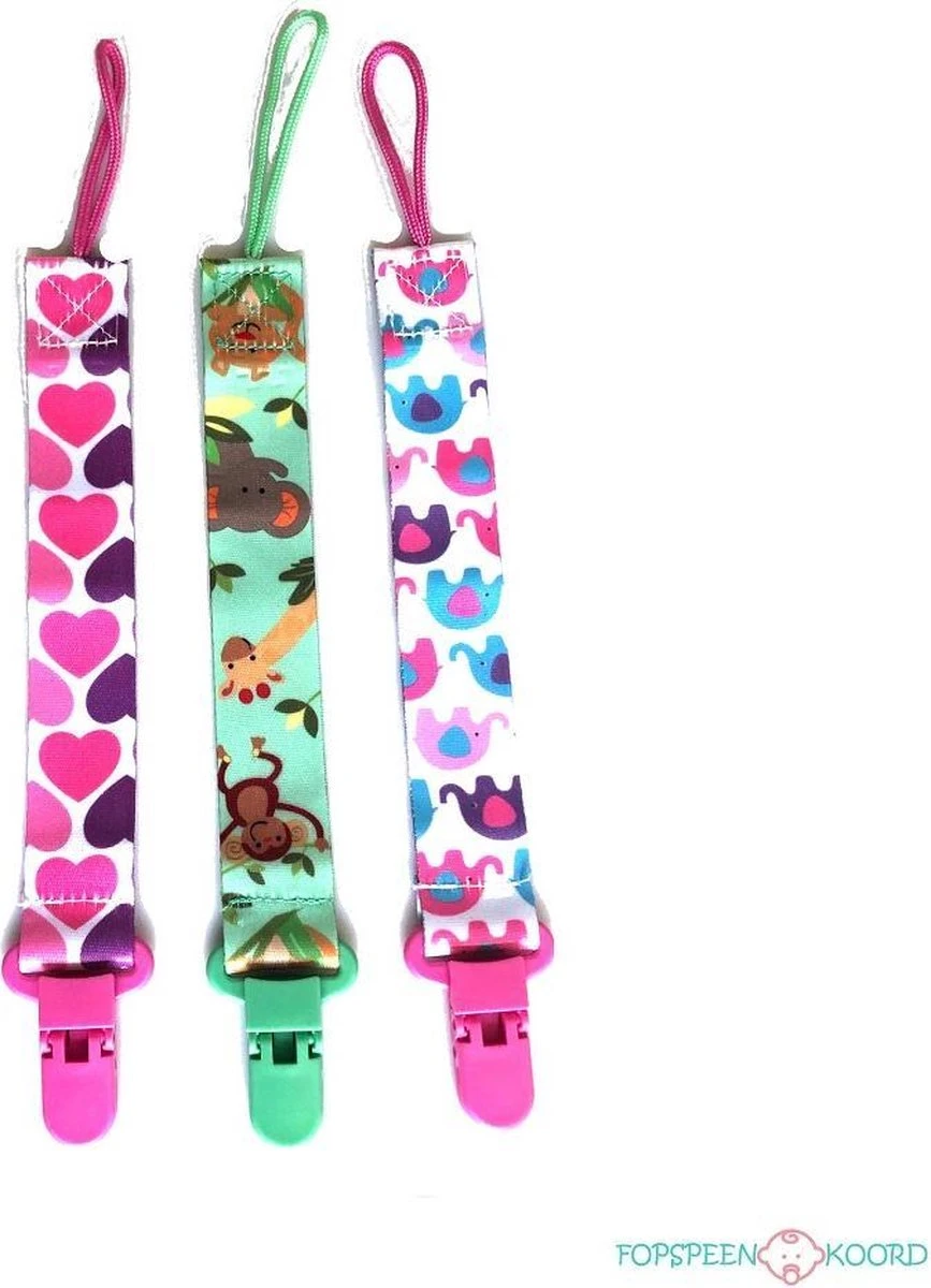 Set van 3 speenkoorden in een super vrolijk dierenthema. Een voordelige keuze voor een compleet pakket afwisselende speenkoordjes.