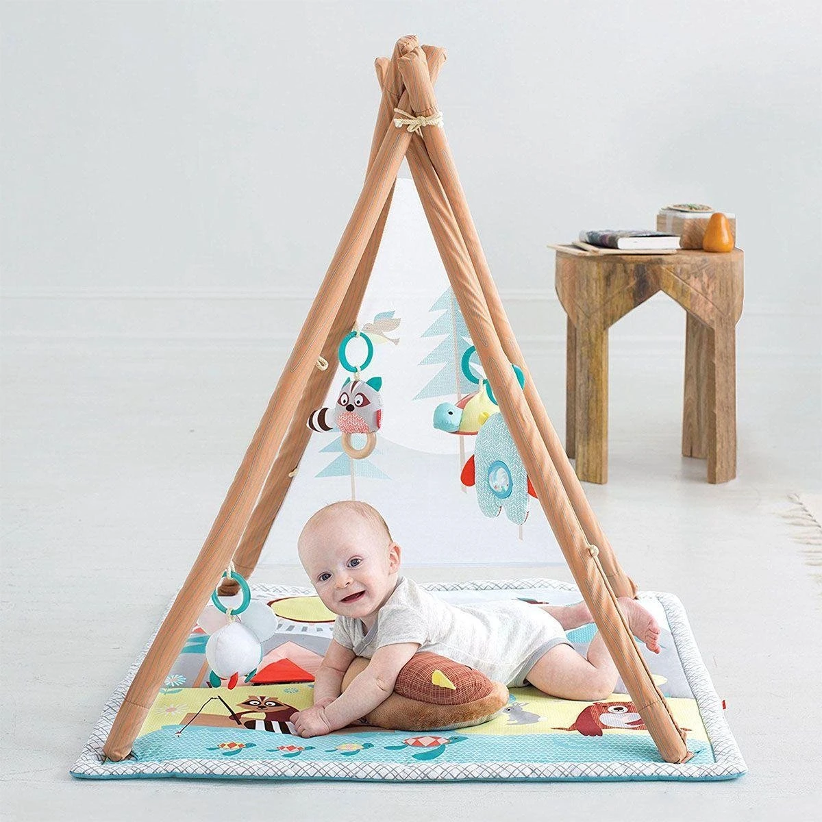 Dit super hippe speelkleed van SkipHop is speciaal voor kleine avonturiers met een outdoor gevoel. Deze Tipi ligt niet alleen heerlijk, hij ziet er ook nog eens super schattig uit! De oplichtende glimworm, muzikale wasbeer en alle andere leuke natuurvriendjes helpen om de zintuiglijke vaardigheden van je kindje te ontwikkelen.