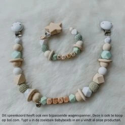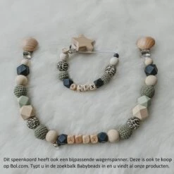 Babybeads – Speenkoord Met Naam – Legergroen Met Tijgerprint – Gepersonaliseerd Kraamcadeau