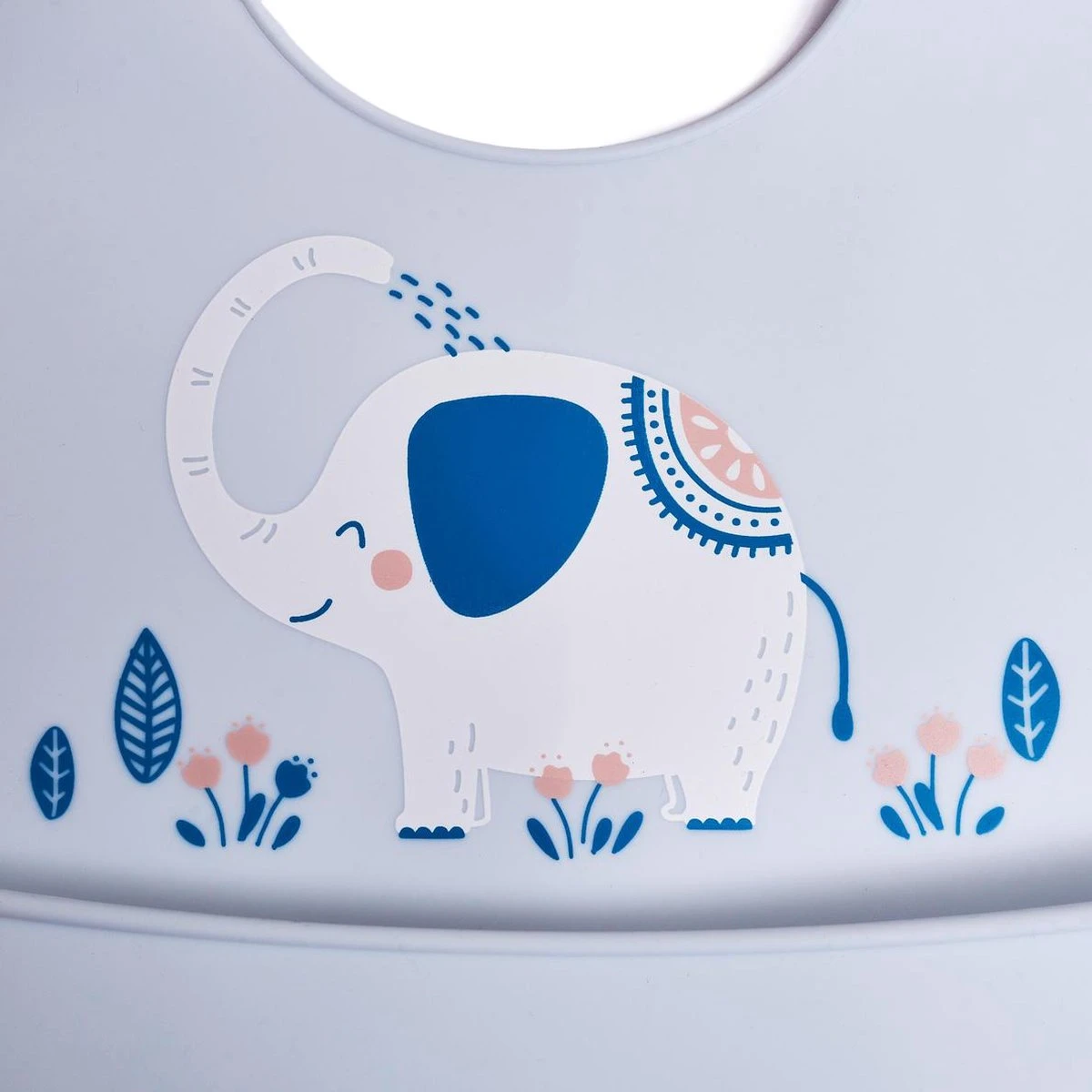 Hippe siliconen slabber met olifant afbeelding voor de allerkleinsten. Deze slabber is voorzien van een handig opvangbakje voor de restjes eten die geknoeid worden tijdens het eten. De slabber is verstelbaar waardoor deze slabber geschikt is voor kinderen vanaf o tot 4 jaar en lekker lang mee kan.
